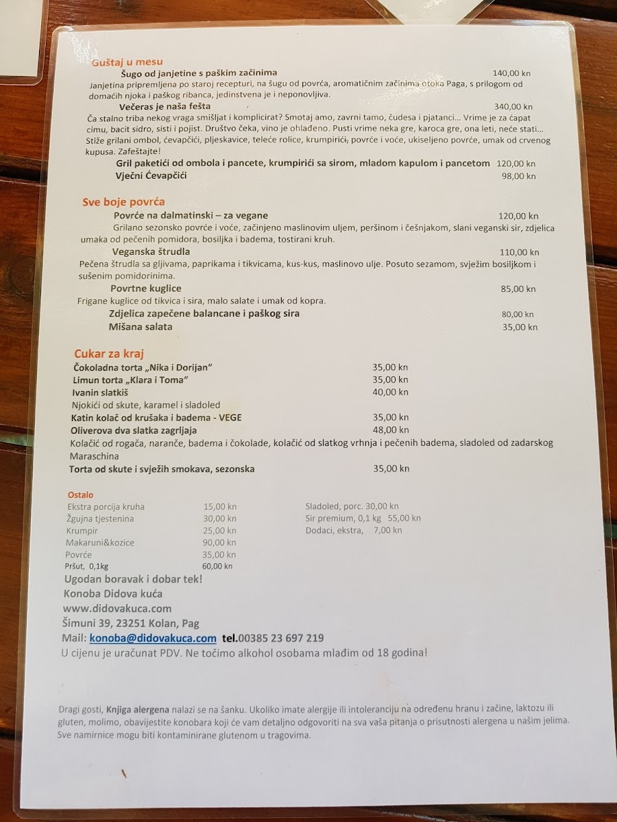 Konoba Didova Kuća Menu